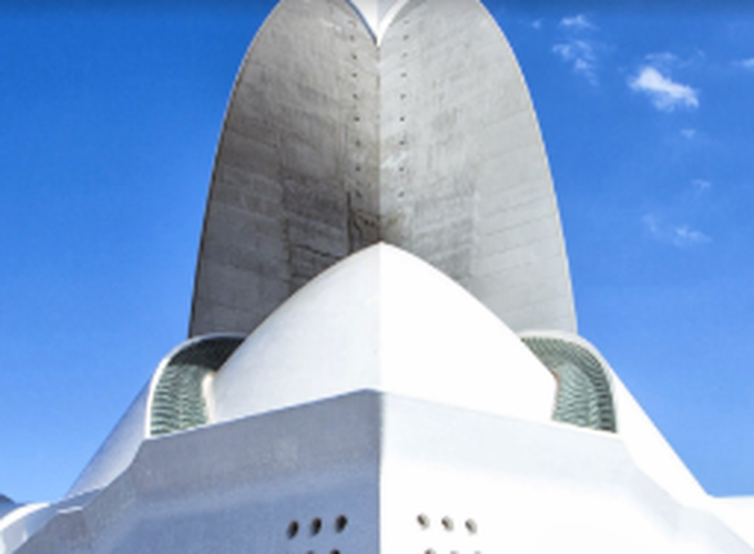 Het gebouw op deze foto is gemaakt op Tenerife. Auditorio de Tenerife) is een operagebouw, ontworpen door de Spaanse architect Santiago Calatrava. Het is het symbool van de stad Santa Cruz de Tenerife (Canarische Eilanden, Spanje) en een van de belangrijkste gebouwen van de hedendaagse Spaanse architectuur.