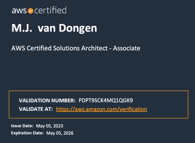 De opleiding is via AWS Partner programma gedaan. Gedurende 3 maanden was er elke week 2 tot 3 live sessie met AWS architects.